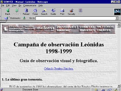 Página web de SOMYCE para la campaña de las Leónidas 1998-1998.
