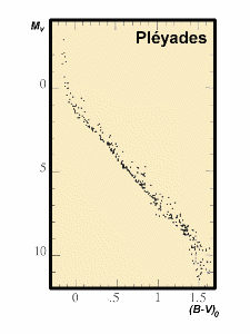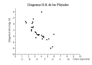 Figura 8. Diagrama HR (usando fotometría) del cúmulo abierto de las Pléyades, en Tauro.