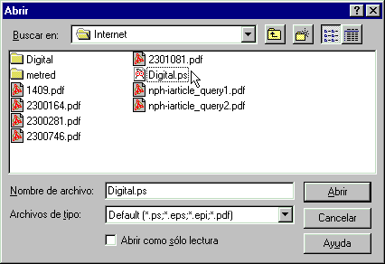 típico de Windows95/98 para seleccionar el archivo PostScript a